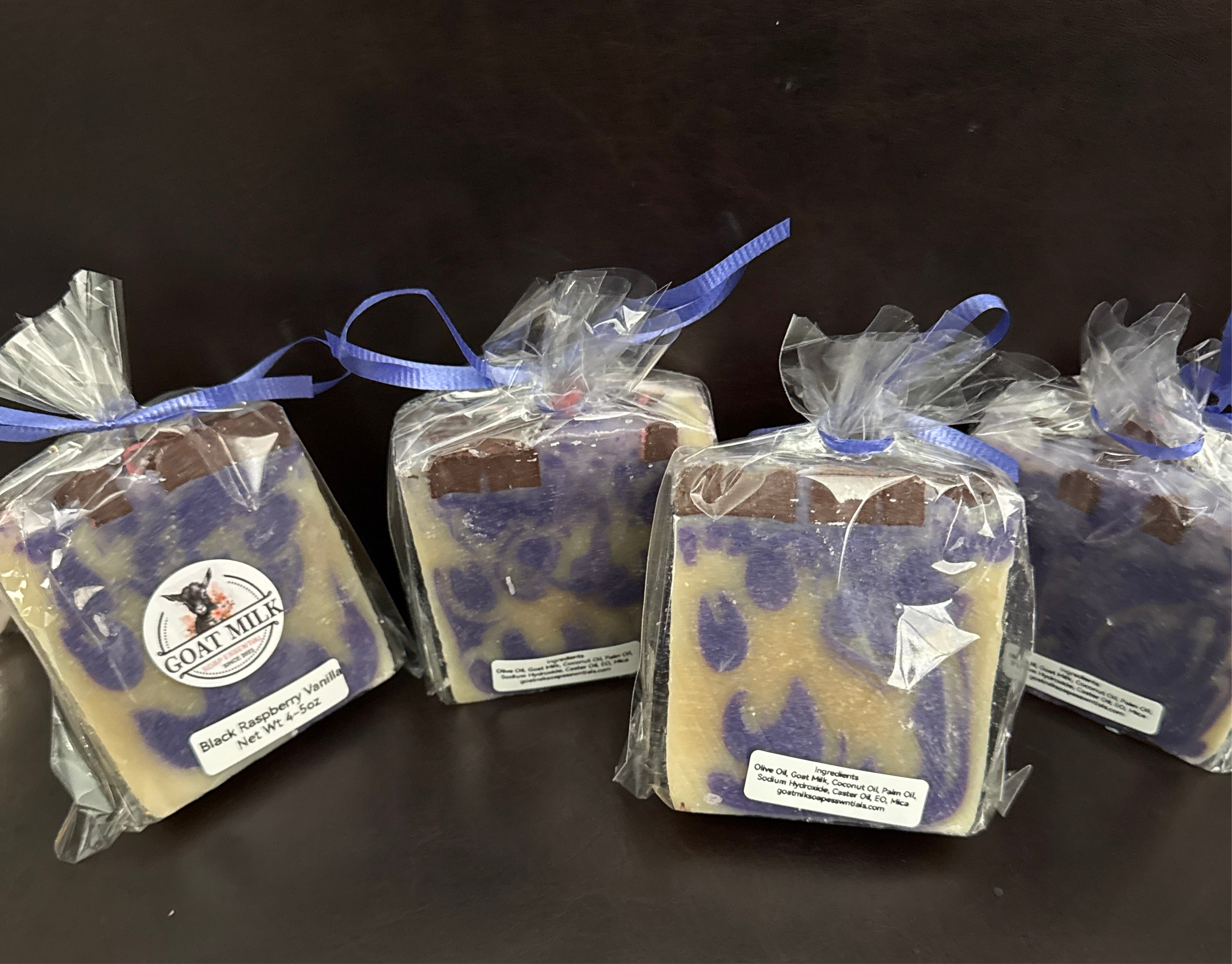 Olive Oil, Goat Milk, Coconut Oil, Palm Oil, Sodium Hydroxide, Castir Oil, EO, Mica