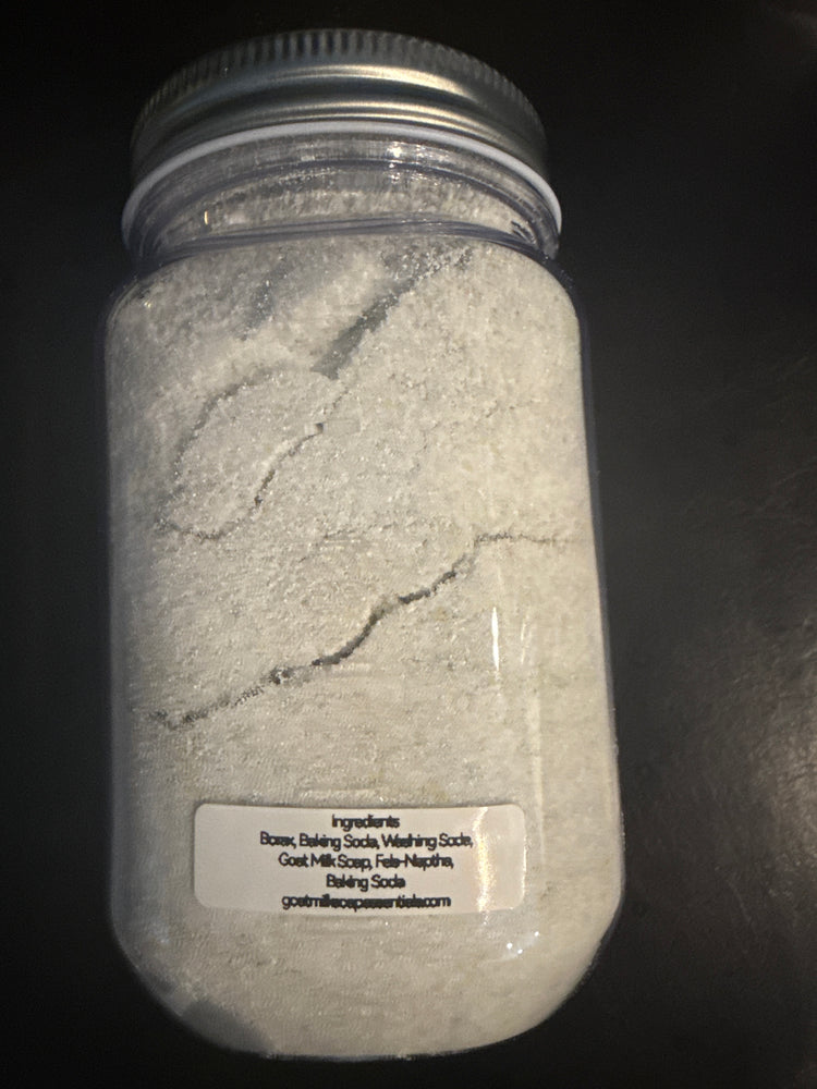 Borax, Goat Milk, Goat Milk Soap, Washing Soda, Fels Neptha, Baking Soda.
